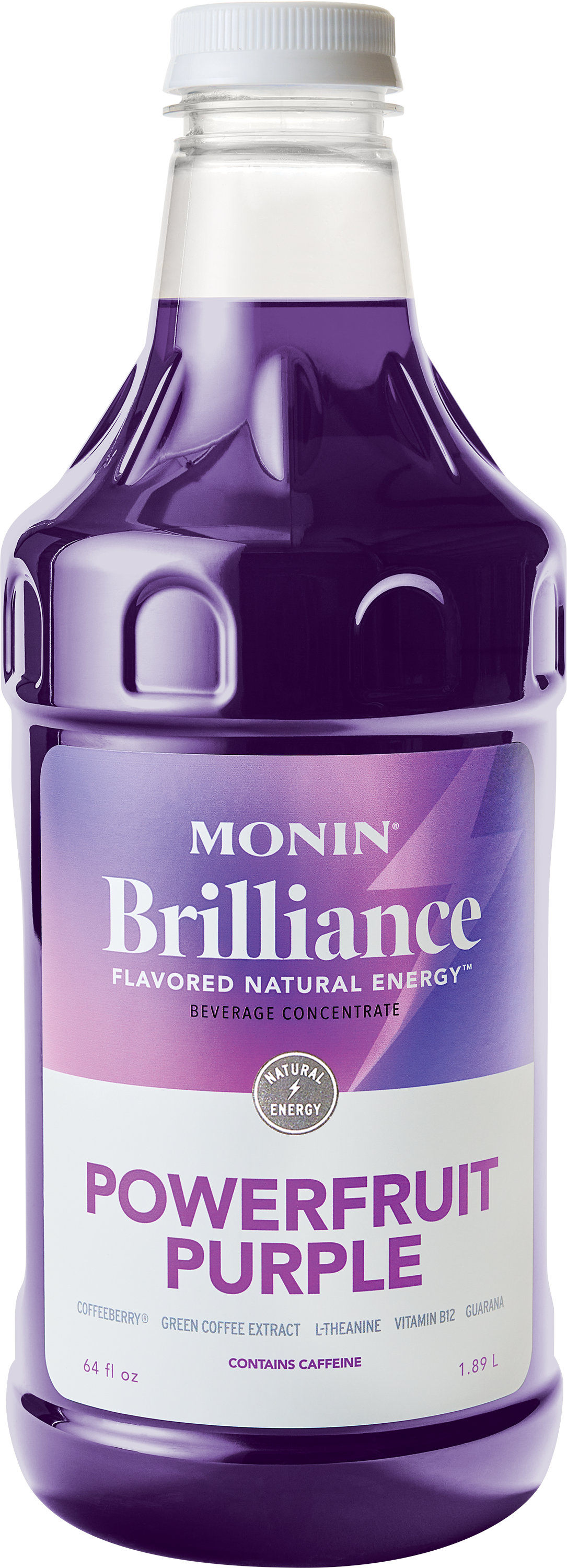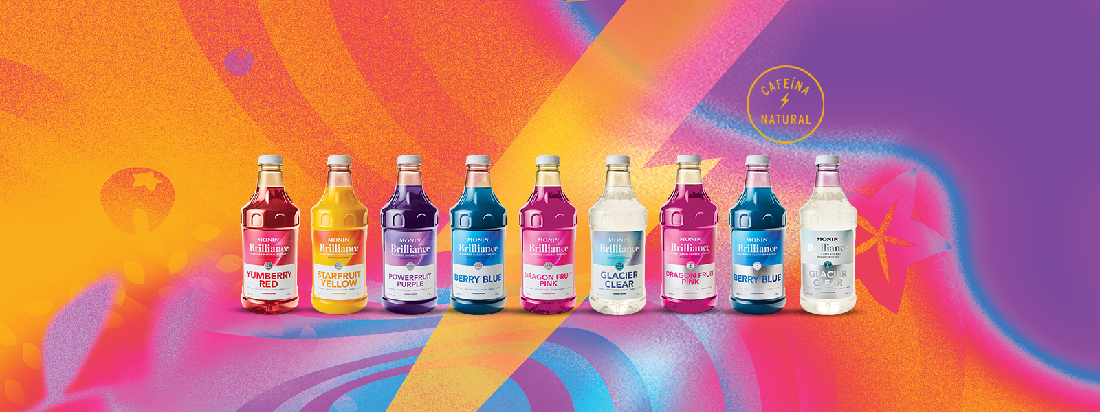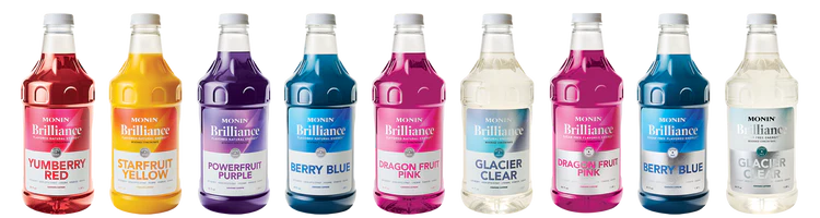 Una novedosa y radiante forma de recargar energía. Con sólo 2 bombas, Brilliance Energy Monin transforma el agua con gas en vibrantes y sabrosas bebidas energéticas. Estos coloridos concentrados energéticos combinan el poder del Coffeeberry® Energy, extracto de café verde, L-teanina, vitamina B12 y guaraná, creando deliciosas y llamativas bebidas energéticas heladas llenas de sabor a fruta real.