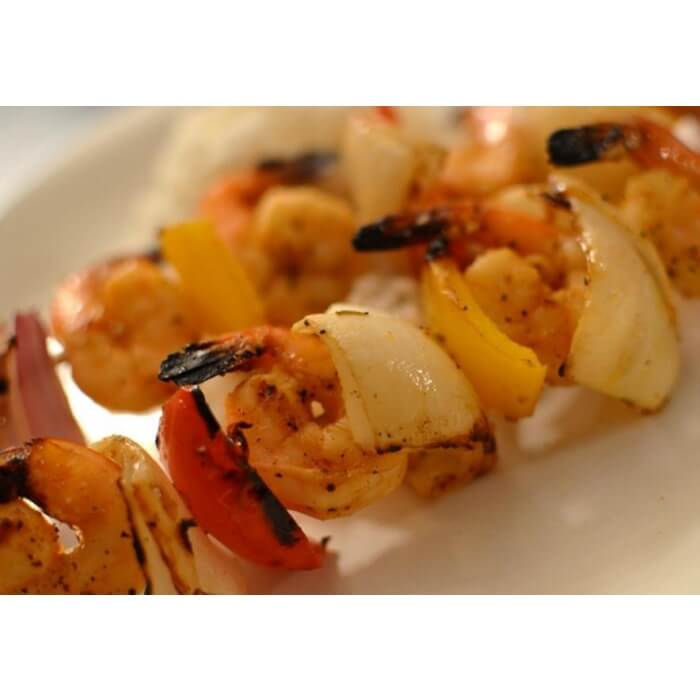 Brochetas de langostinos con mango y lima