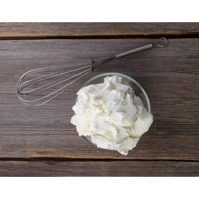 - Combine la crema espesa y el azúcar en el tazón de una batidora de pedestal equipada con el accesorio de batidor y enciéndala a velocidad media-alta.