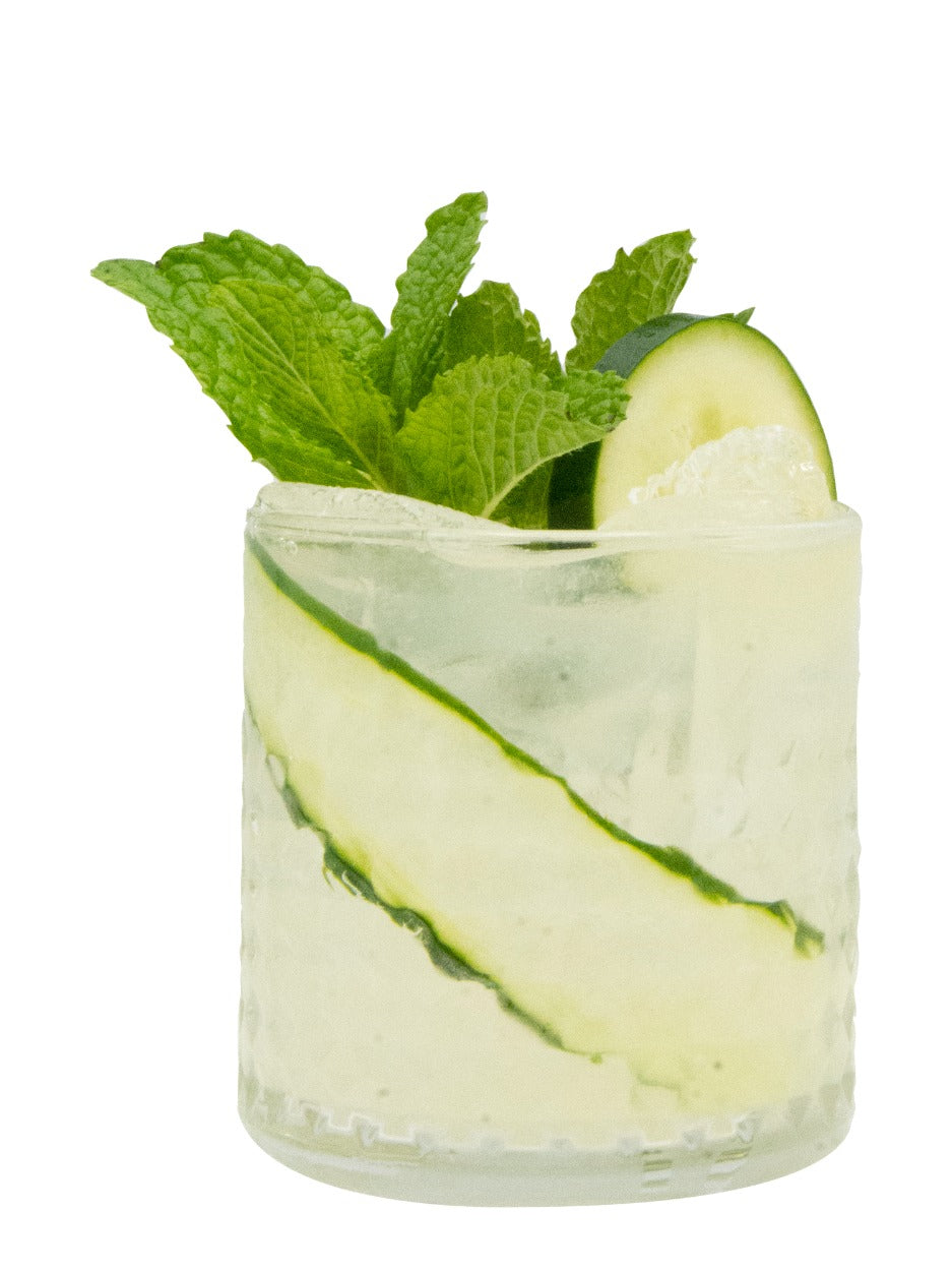 - 1 L de ginebra Hendricks®, 325 ml de flor de saúco St. Germaine, 325 ml de jarabe de pepino Monin®, 56 ml de saborizante concentrado de albahaca Monin®, 695 ml de jugo de lima, 1275 ml de agua